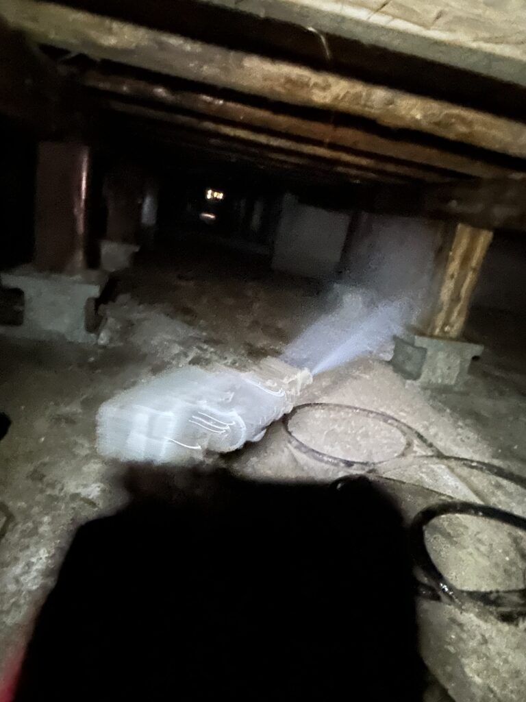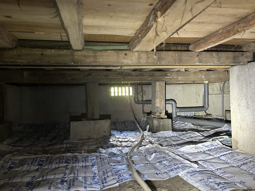今回シロアリ被害があったわけではありませんが過去にシロアリの予防を行ったことがなく、床下にシロアリの食害が確認できたので予防工事を行いました。