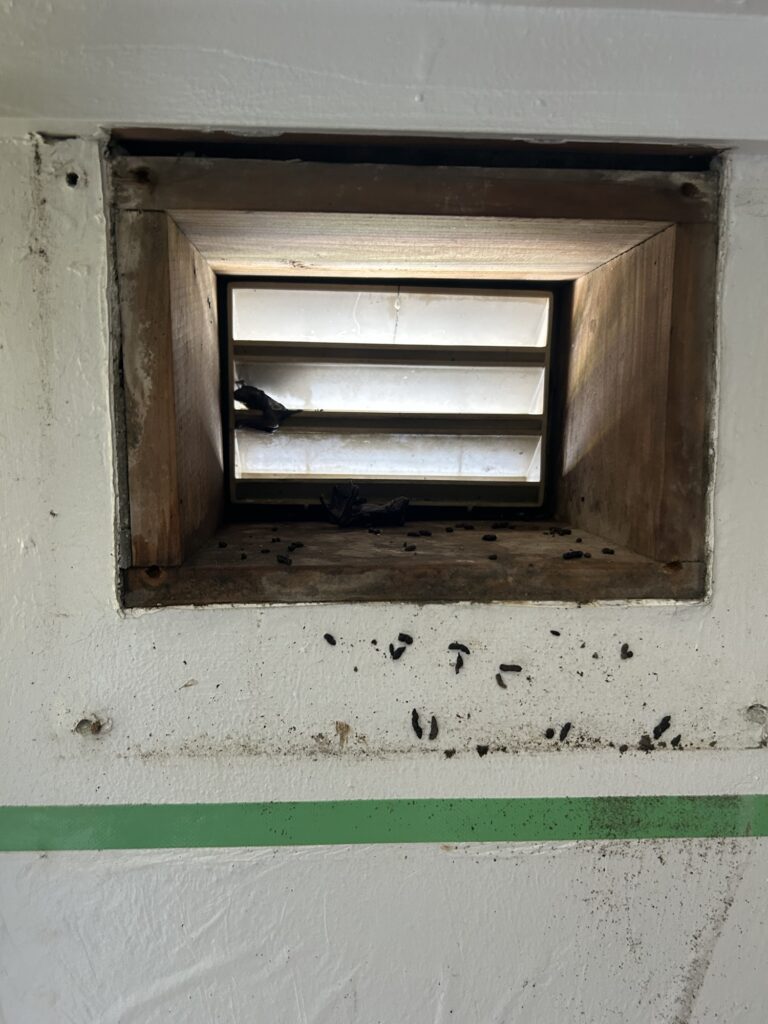 換気口にコウモリが住み着いてしまったので駆除のご依頼をいただきました。